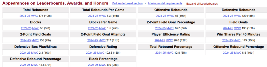 What makes Cherry stand out is the scarcity of players like him. While Power 5 programs are scrambling late to add lesser bigs, Sac State landed a proven Mountain West center who projects as the 248th-best player nationally in advanced rankings. Defensively, he posted a 102.8 DRtg—legit anchor material. Offensively, his 114.7 ORtg shows he doesn’t need to be force-fed to make an impact.
